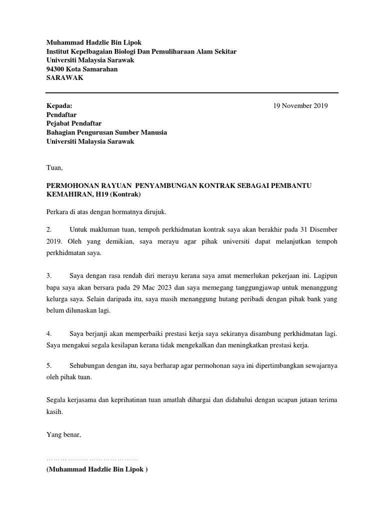 Contoh Surat Lanjutan Kontrak Perkhidmatan Surat Kontrak Untuk Makluman Tuan Tempoh Perkhidmatan Kontrak Saya Akan Berakhir Pada 17 Strickland Greeirds